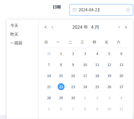 $form->date("start_date", "日期")->addShortcuts($shortcuts_list,true);关闭(禁用)快捷选项