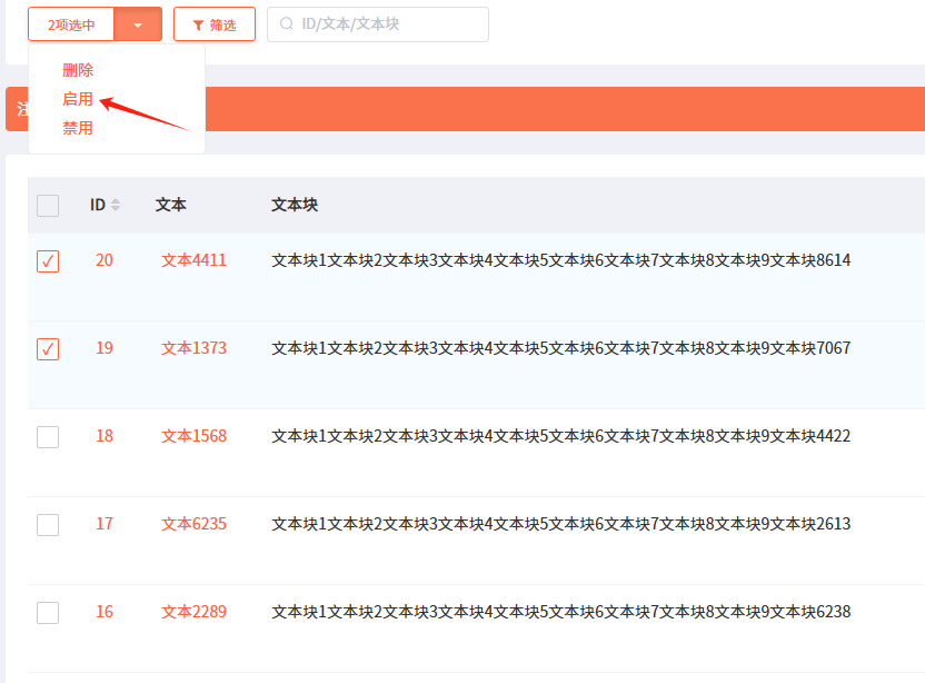 $batchActions->add("启用", new SwitchFun(["action"=>1]));